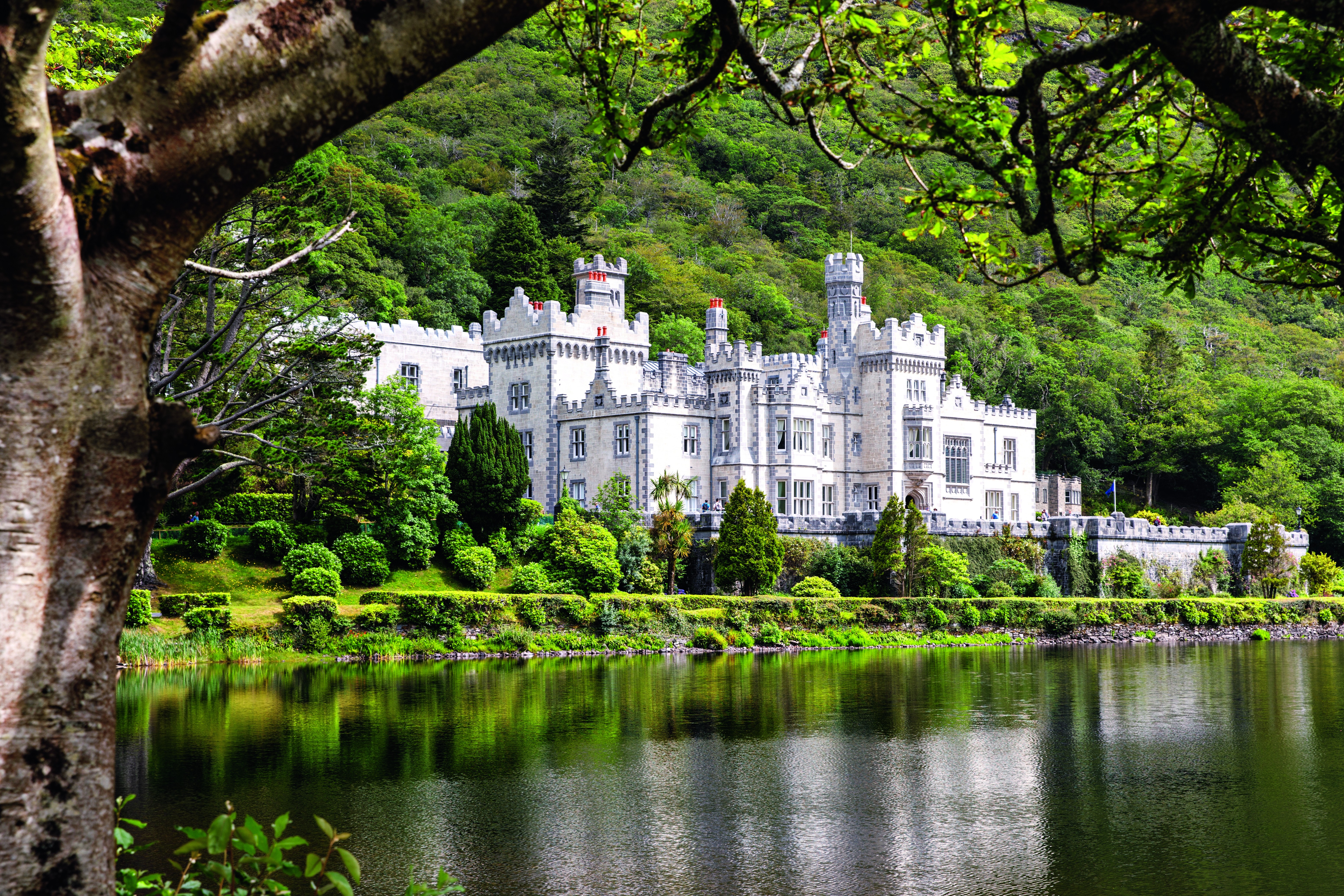 Gärten. Kylemore Abbey liegt versteckt in einem
